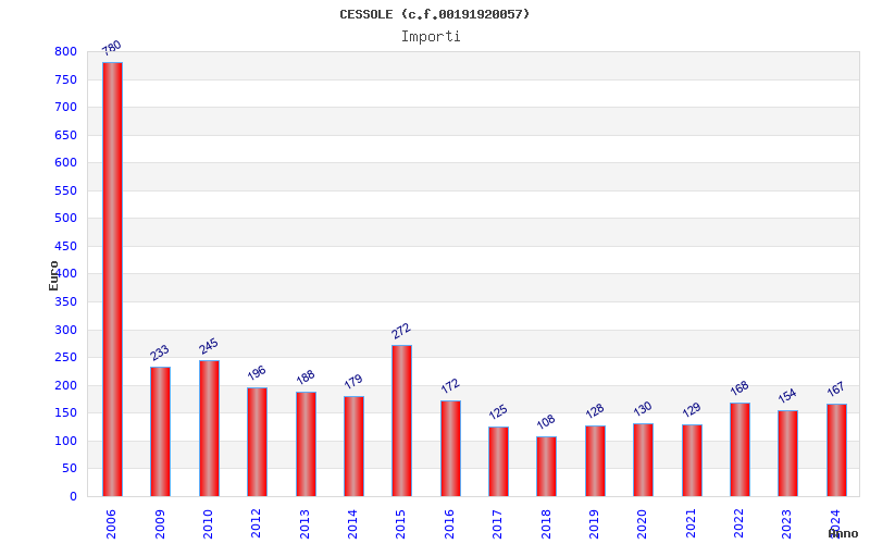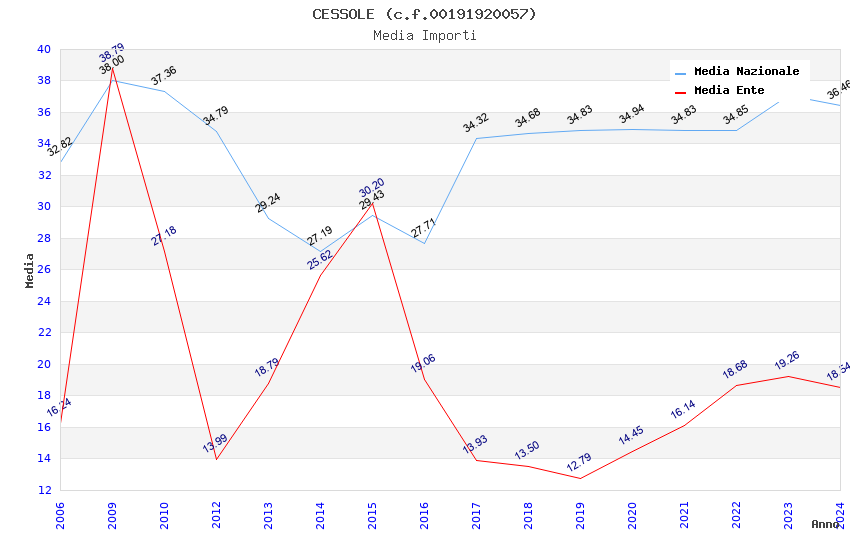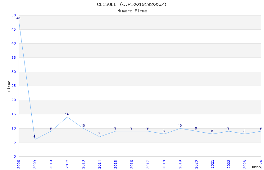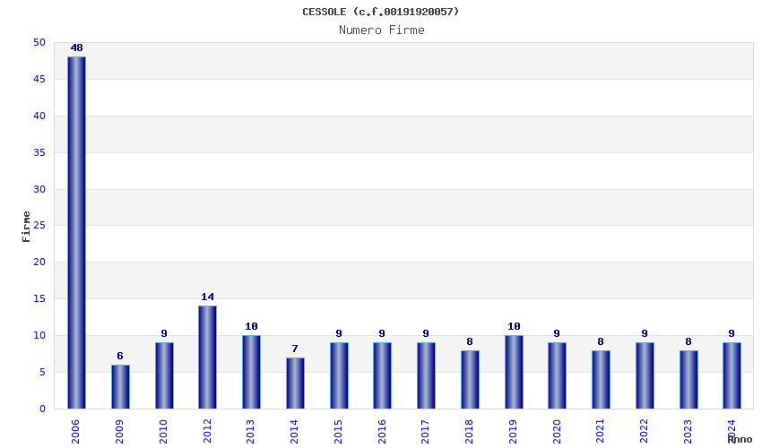 | Anno | Firme | Importi | Media | Naz. | Reg. | Prov. | Comu. |