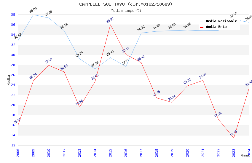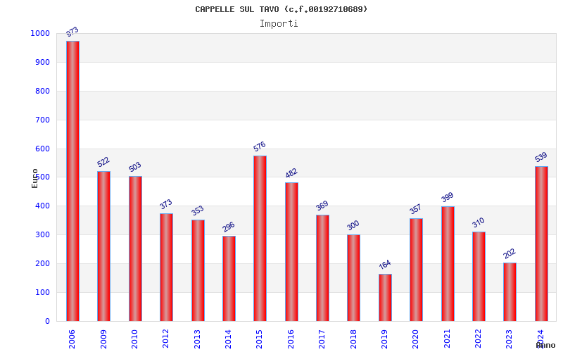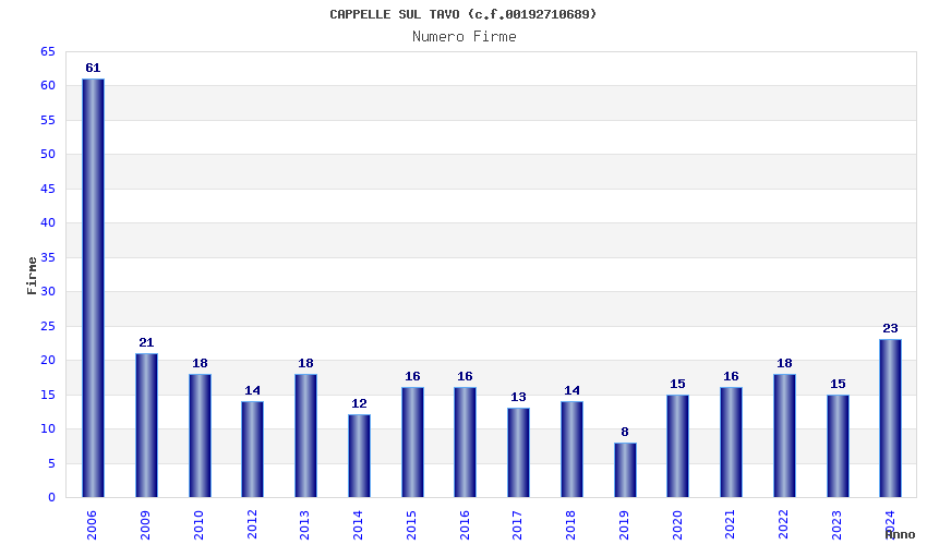 | Anno | Firme | Importi | Media | Naz. | Reg. | Prov. | Comu. |