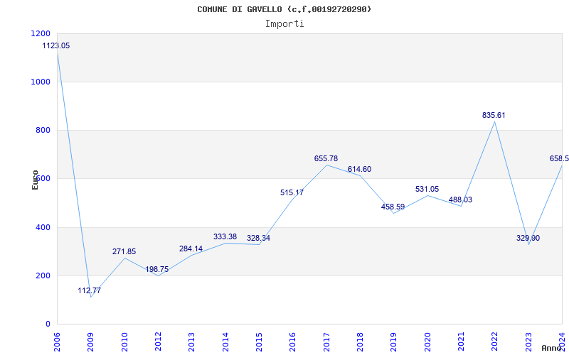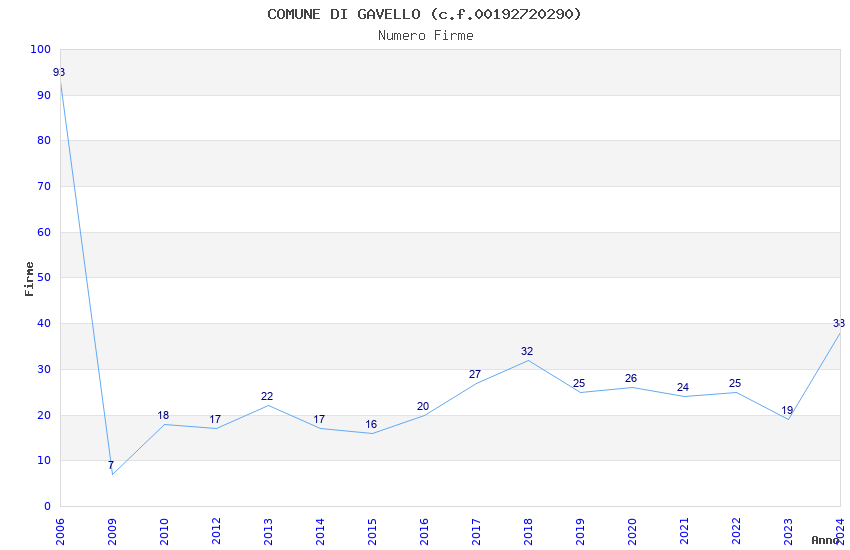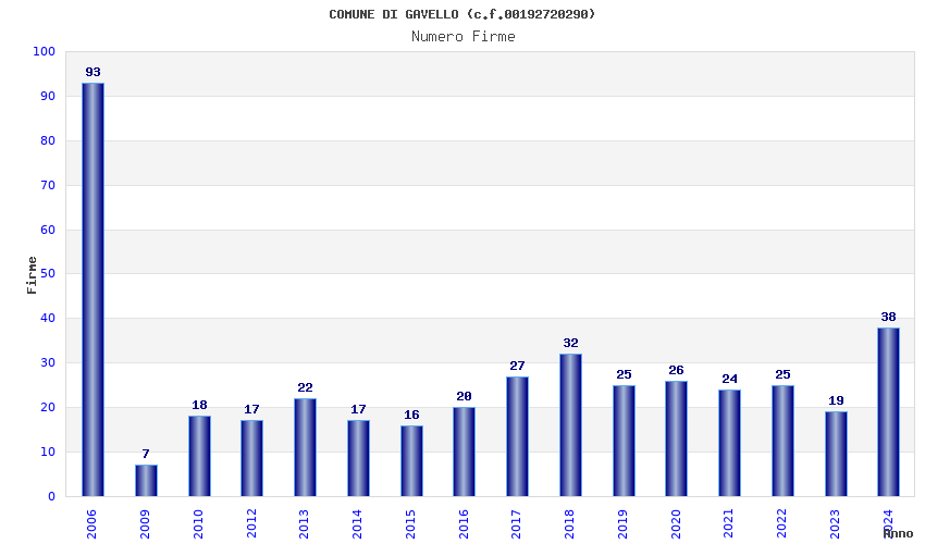 | Anno | Firme | Importi | Media | Naz. | Reg. | Prov. | Comu. |