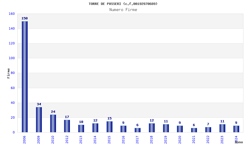 | Anno | Firme | Importi | Media | Naz. | Reg. | Prov. | Comu. |