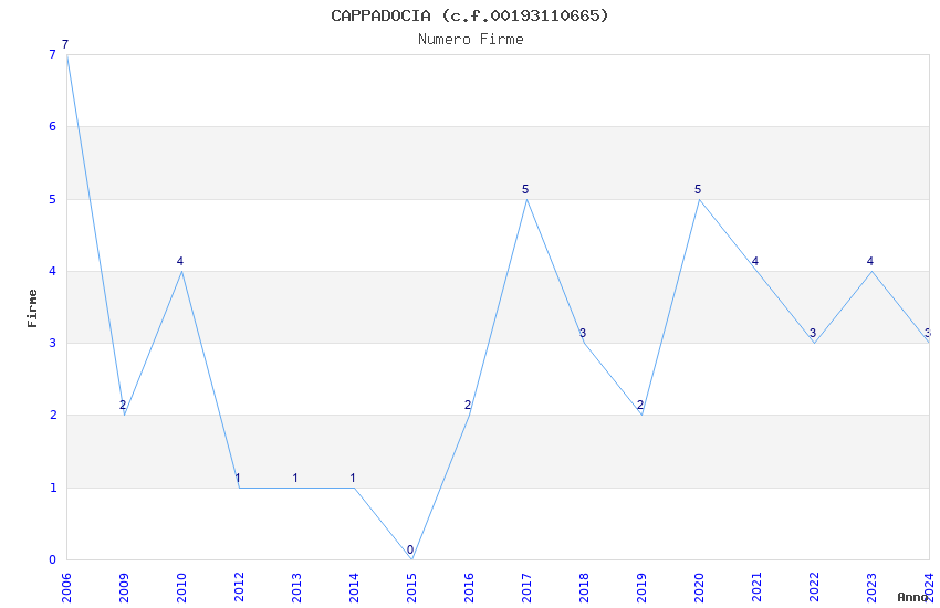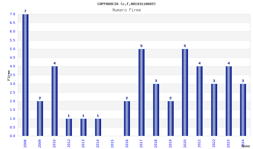 | Anno | Firme | Importi | Media | Naz. | Reg. | Prov. | Comu. |