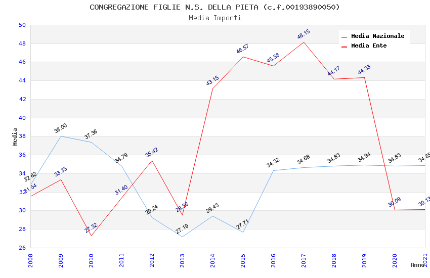 | Anno | Firme | Importi | Media | Naz. | Reg. | Prov. | Comu. |