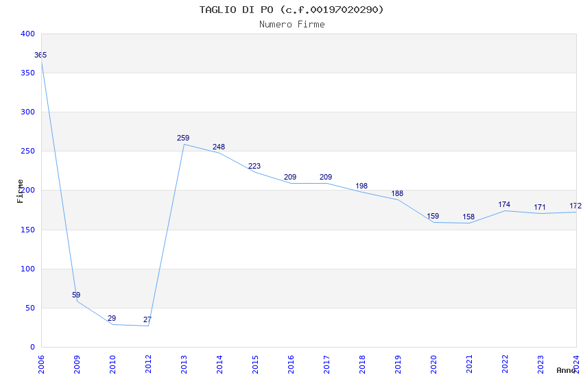 | 2016 | 209 | 2.695,26 | 12,90 | 18.595 | 1.784 | 56 | 3 |