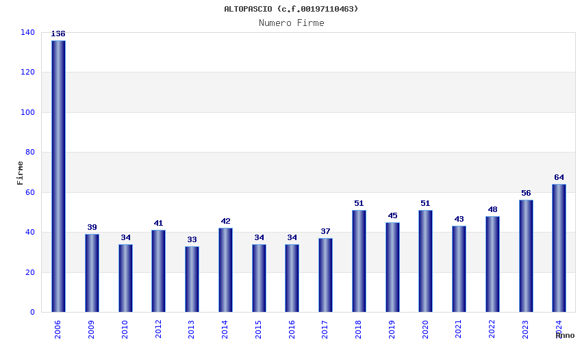 | Anno | Firme | Importi | Media | Naz. | Reg. | Prov. | Comu. |