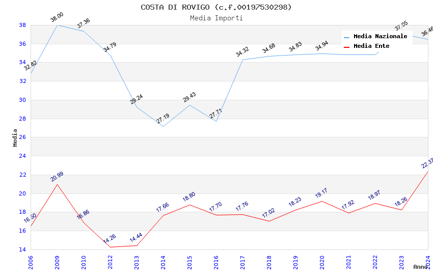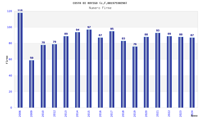 | Anno | Firme | Importi | Media | Naz. | Reg. | Prov. | Comu. |