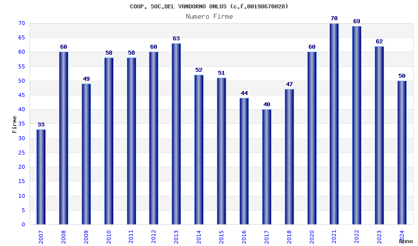 | 2021 | 70 | 4.570,67 | 65,30 | 11.965 | 835 | 37 | 25 |