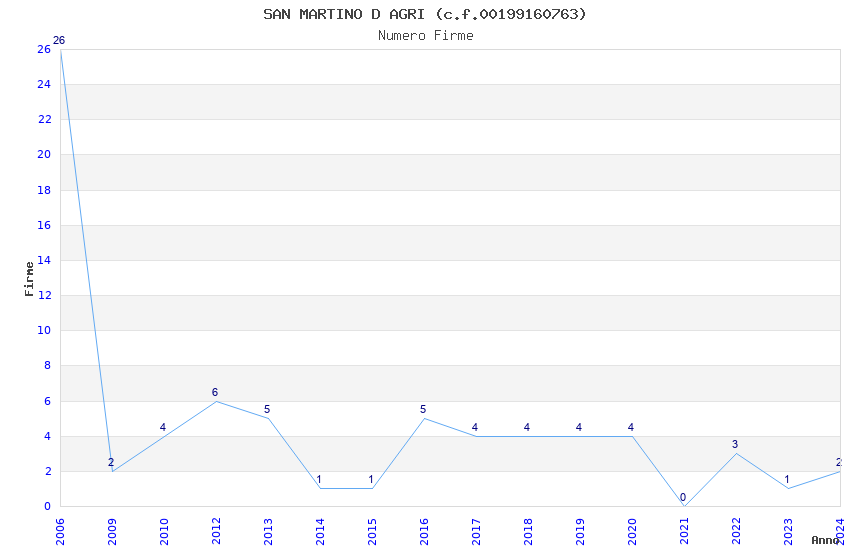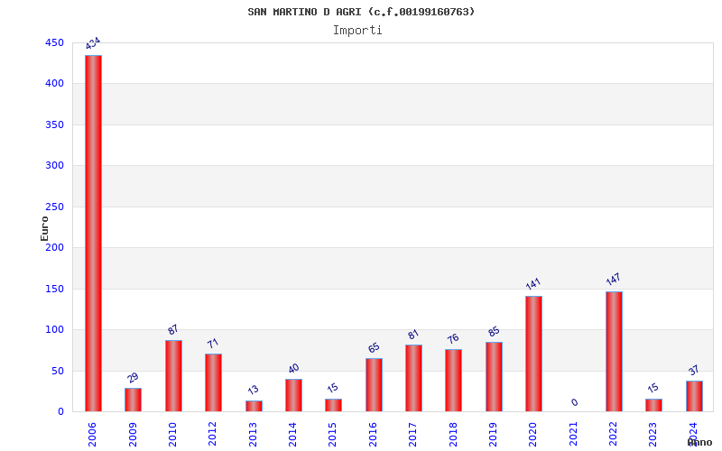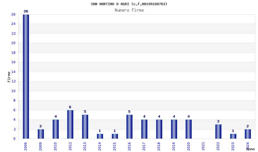 | Anno | Firme | Importi | Media | Naz. | Reg. | Prov. | Comu. |