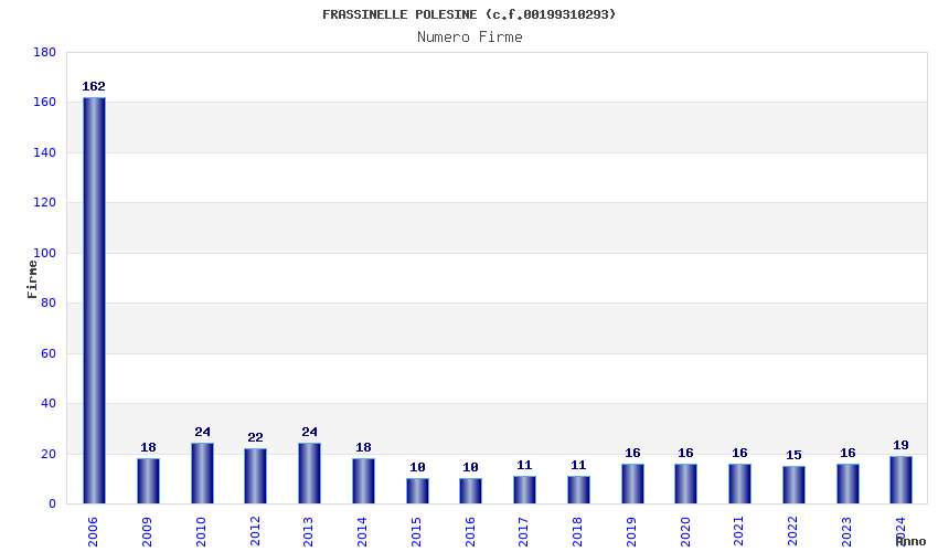 | Anno | Firme | Importi | Media | Naz. | Reg. | Prov. | Comu. |