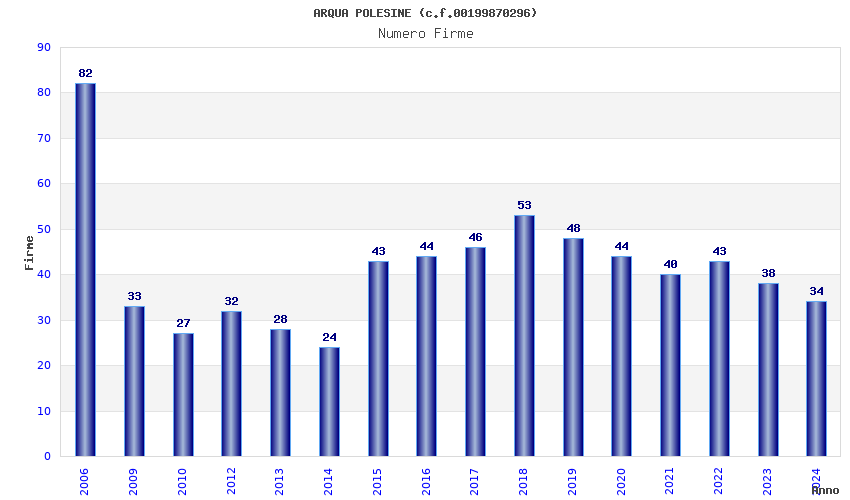 | Anno | Firme | Importi | Media | Naz. | Reg. | Prov. | Comu. |
