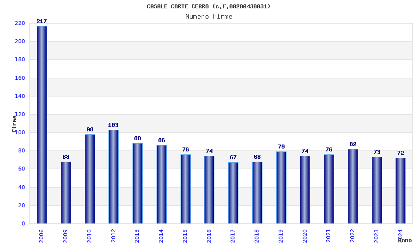 | Anno | Firme | Importi | Media | Naz. | Reg. | Prov. | Comu. |