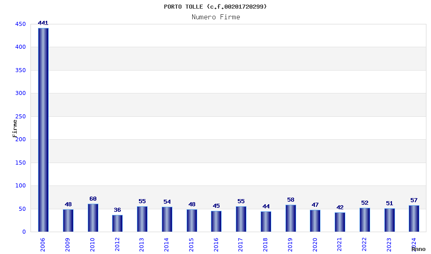 | Anno | Firme | Importi | Media | Naz. | Reg. | Prov. | Comu. |