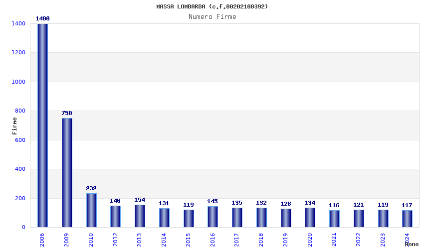| Anno | Firme | Importi | Media | Naz. | Reg. | Prov. | Comu. |
