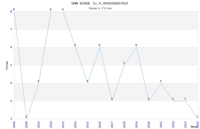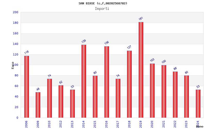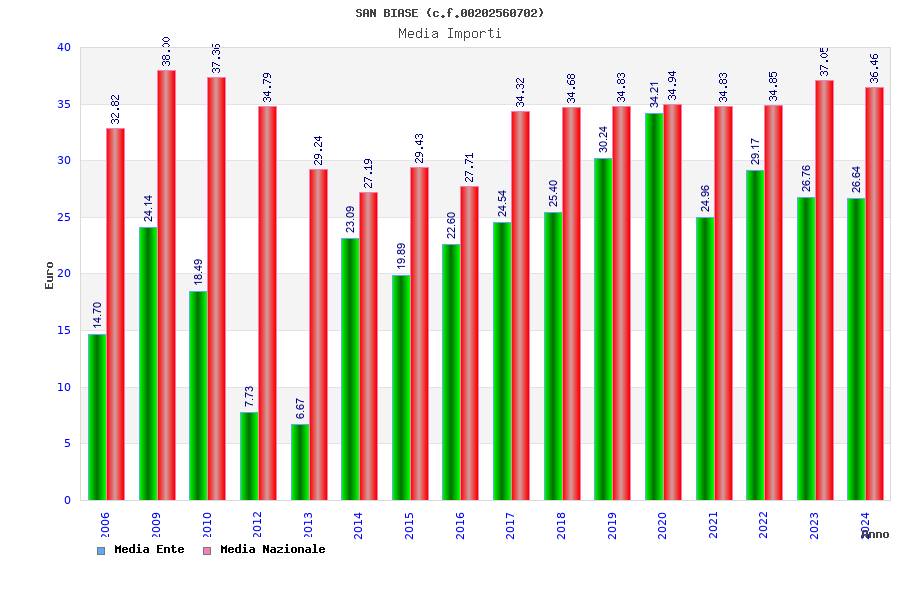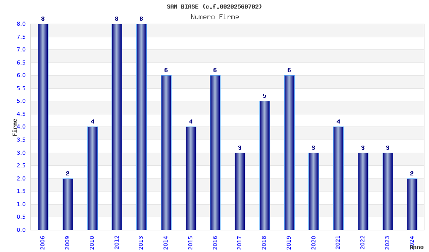 | Anno | Firme | Importi | Media | Naz. | Reg. | Prov. | Comu. |