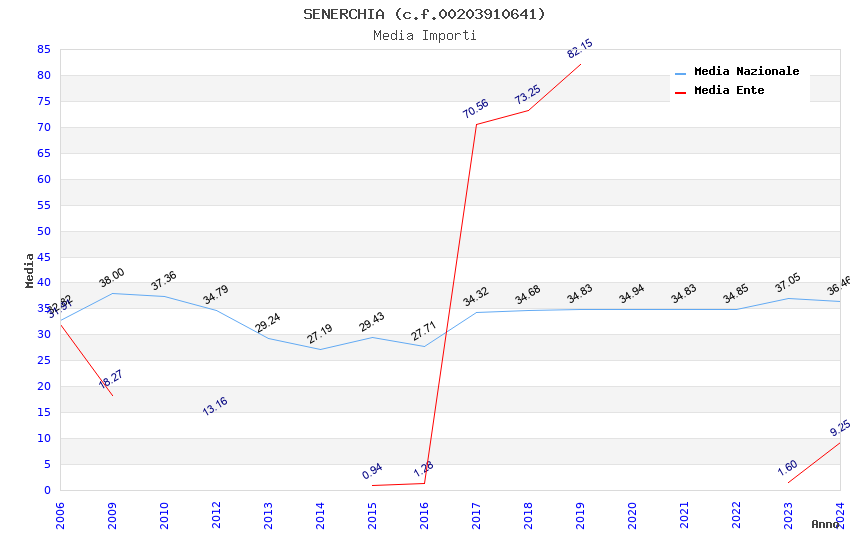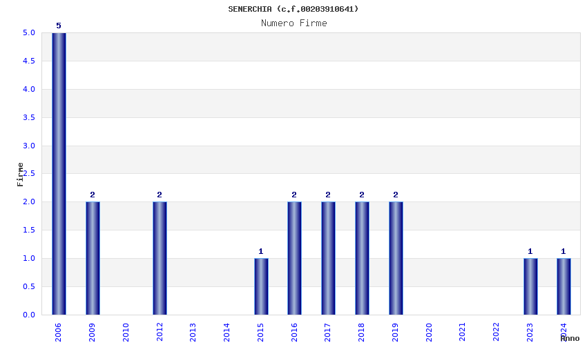 | Anno | Firme | Importi | Media | Naz. | Reg. | Prov. | Comu. |