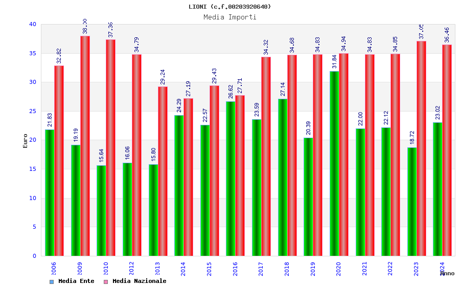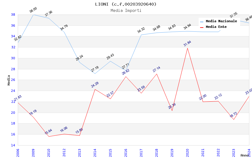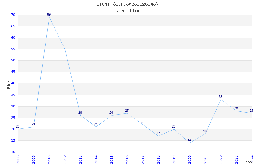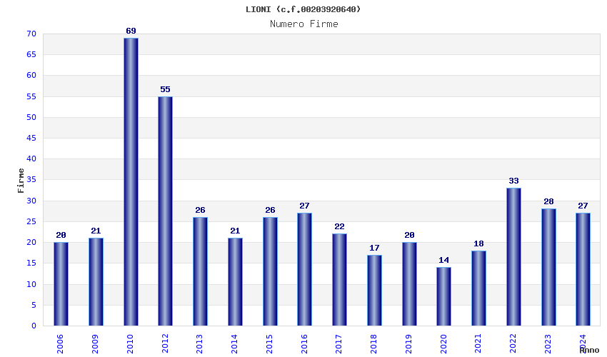 | Anno | Firme | Importi | Media | Naz. | Reg. | Prov. | Comu. |