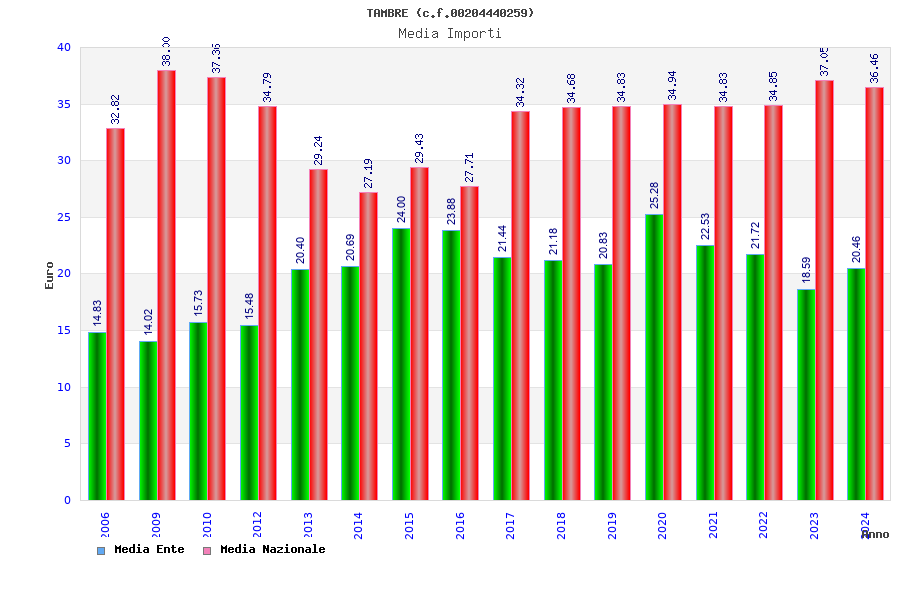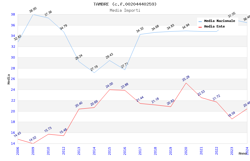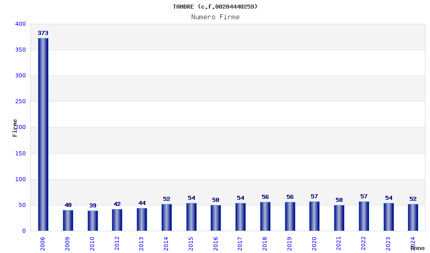 | Anno | Firme | Importi | Media | Naz. | Reg. | Prov. | Comu. |
