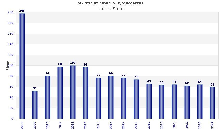 | Anno | Firme | Importi | Media | Naz. | Reg. | Prov. | Comu. |