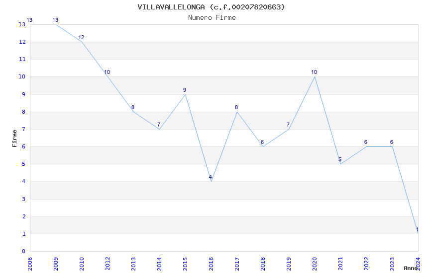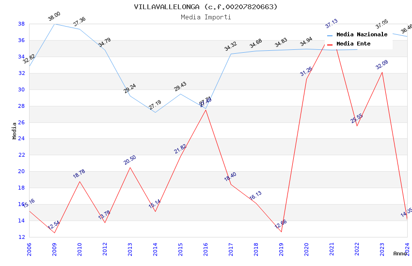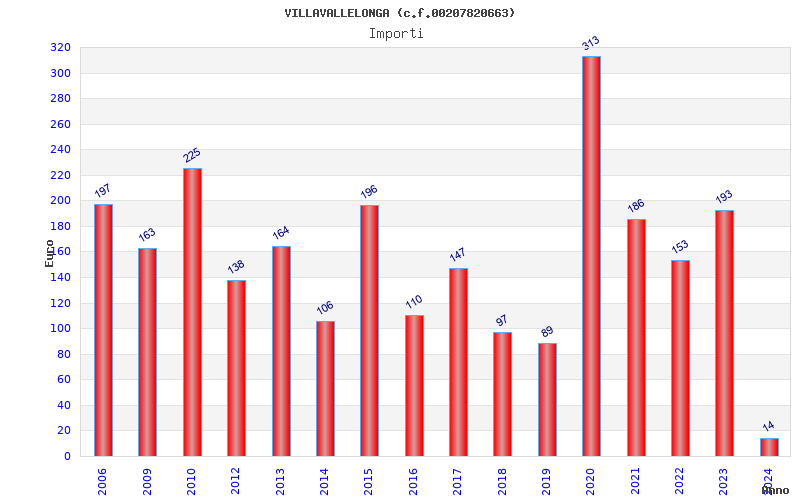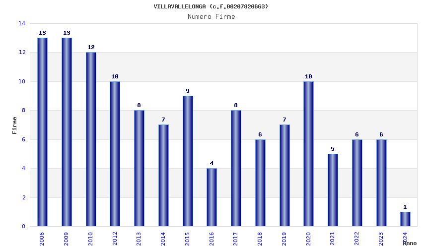 | Anno | Firme | Importi | Media | Naz. | Reg. | Prov. | Comu. |