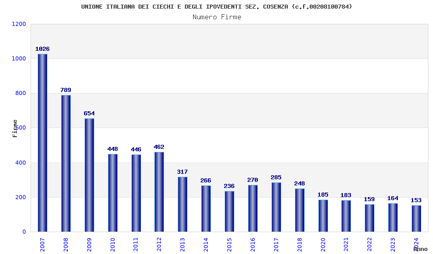 Anno Firme Importi Media Naz. Reg. Prov. Comu.