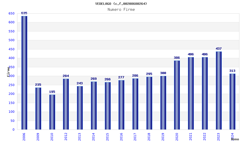 | Anno | Firme | Importi | Media | Naz. | Reg. | Prov. | Comu. |