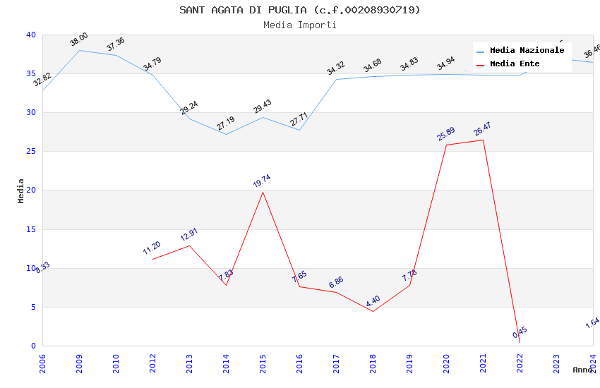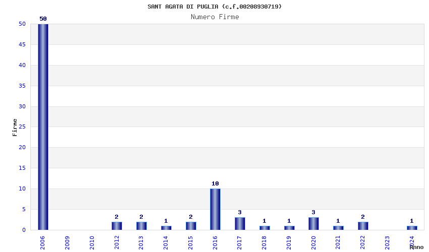 | Anno | Firme | Importi | Media | Naz. | Reg. | Prov. | Comu. |