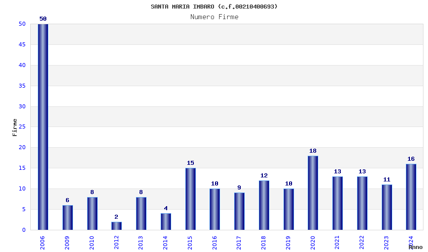 | Anno | Firme | Importi | Media | Naz. | Reg. | Prov. | Comu. |
