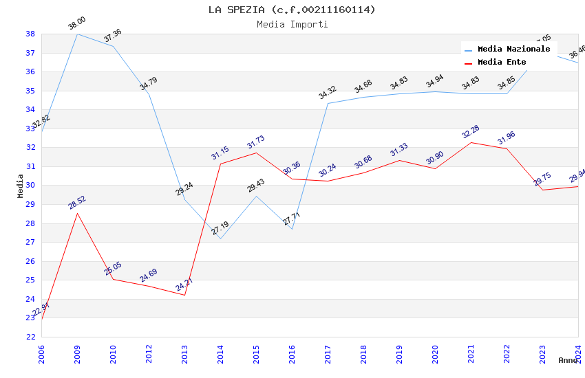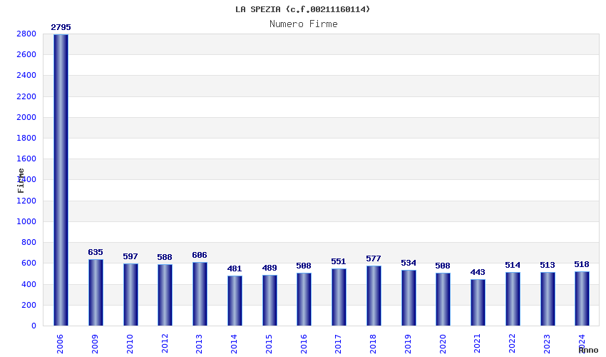 | Anno | Firme | Importi | Media | Naz. | Reg. | Prov. | Comu. |