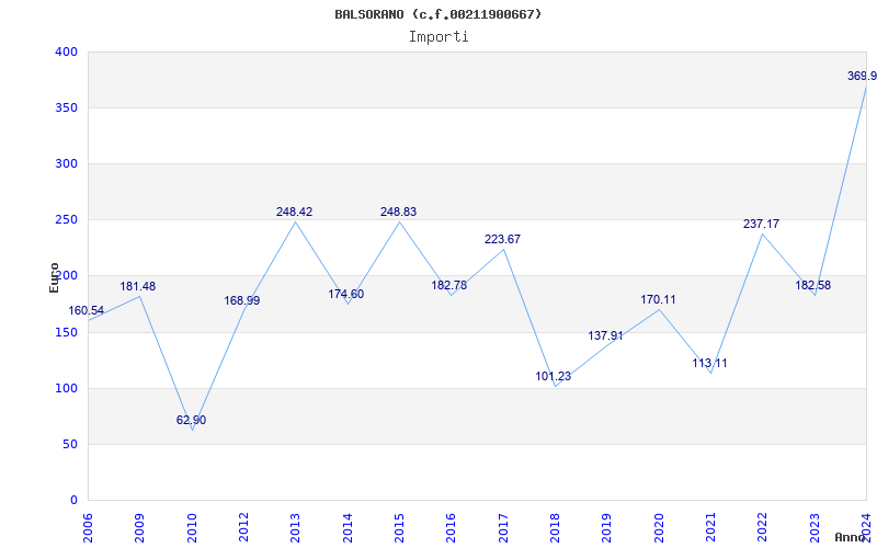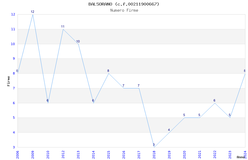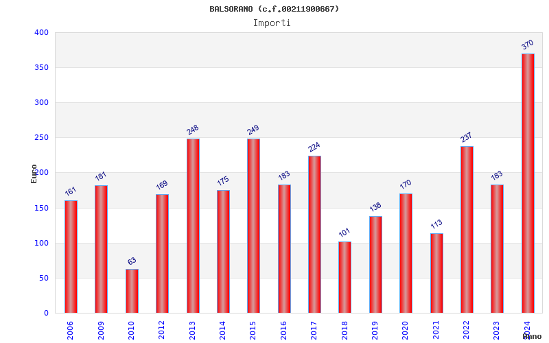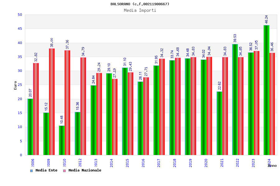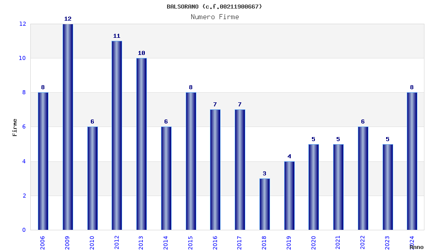 | Anno | Firme | Importi | Media | Naz. | Reg. | Prov. | Comu. |
