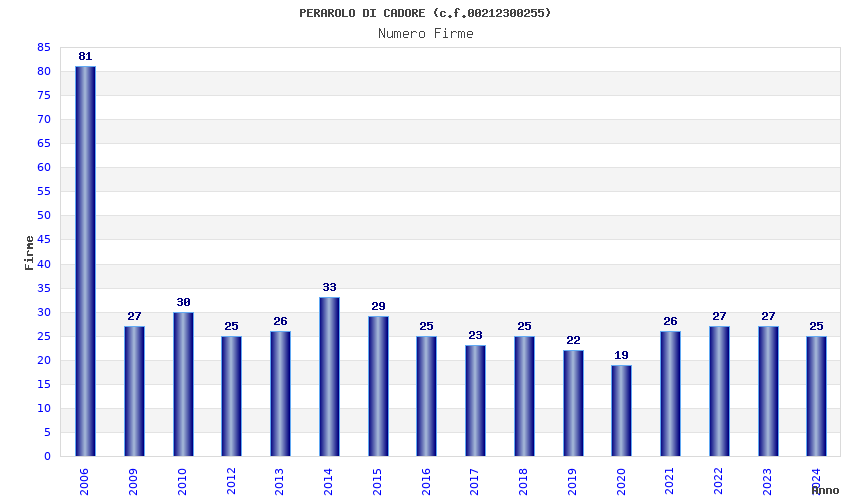 | Anno | Firme | Importi | Media | Naz. | Reg. | Prov. | Comu. |