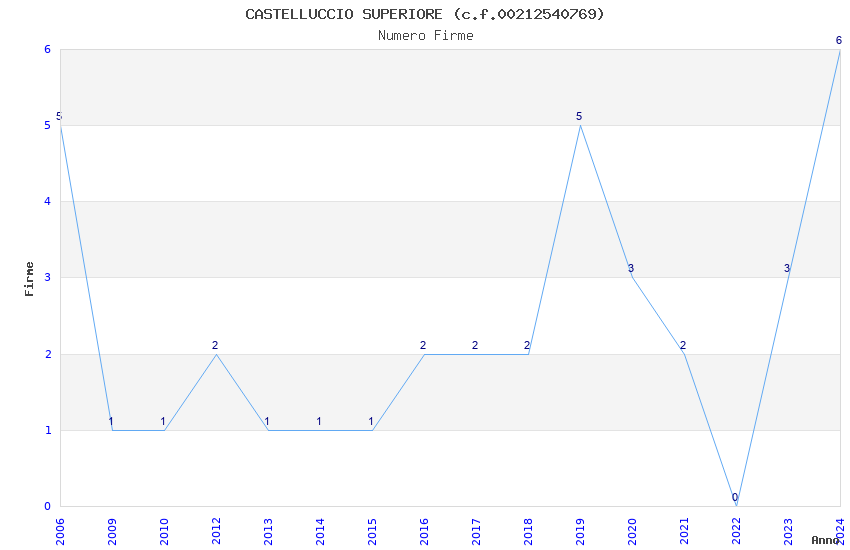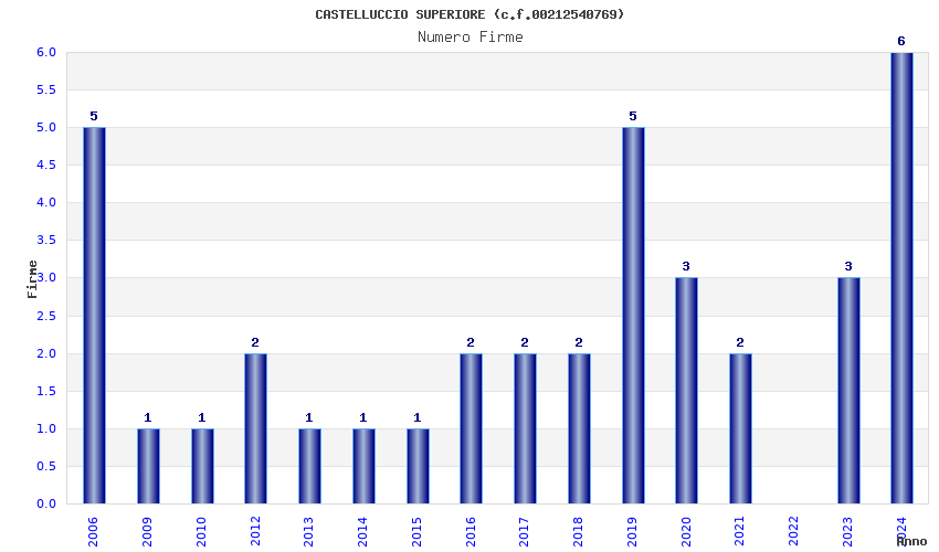 | Anno | Firme | Importi | Media | Naz. | Reg. | Prov. | Comu. |
