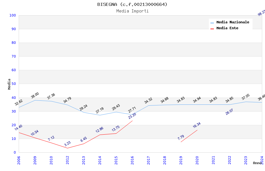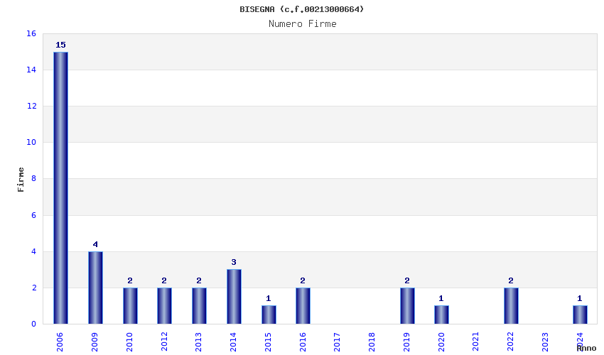 | Anno | Firme | Importi | Media | Naz. | Reg. | Prov. | Comu. |