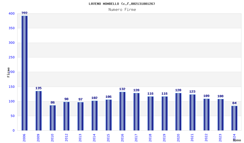 | Anno | Firme | Importi | Media | Naz. | Reg. | Prov. | Comu. |
