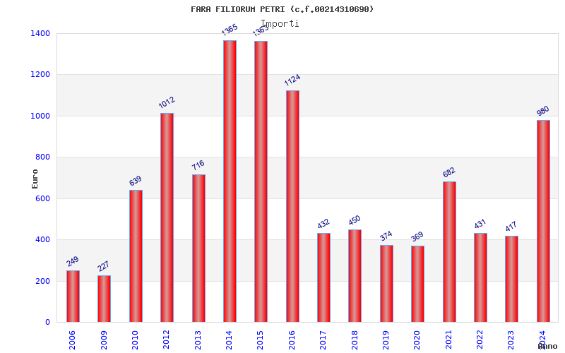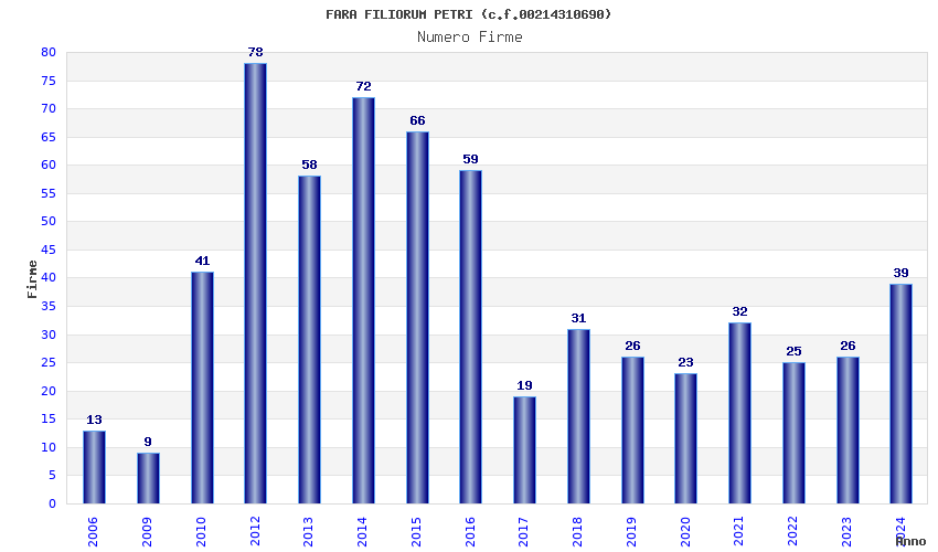 | Anno | Firme | Importi | Media | Naz. | Reg. | Prov. | Comu. |