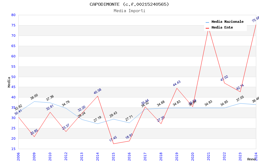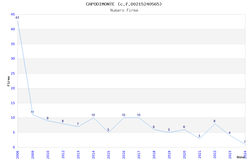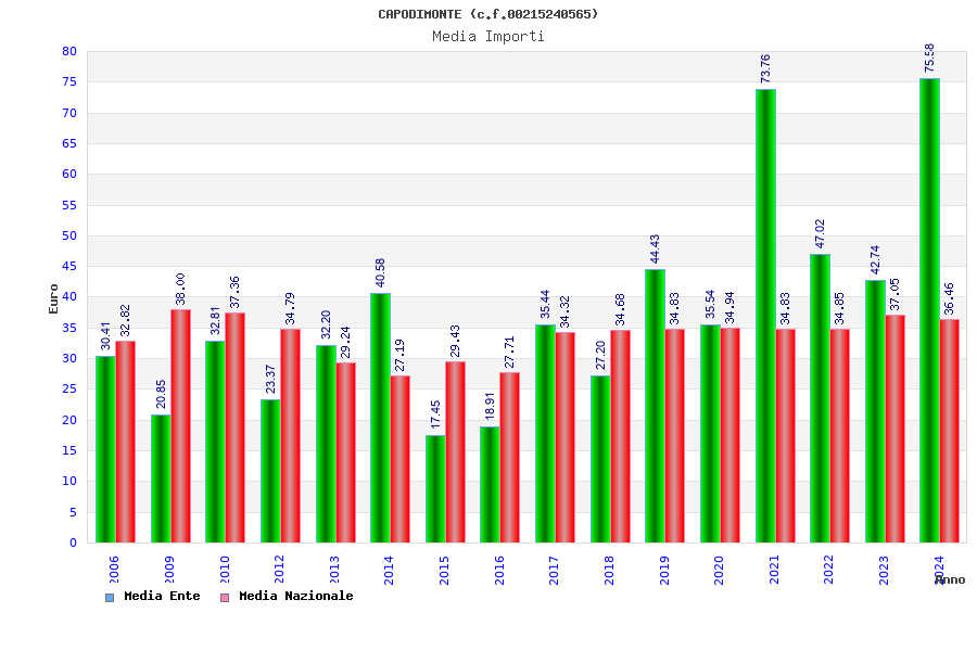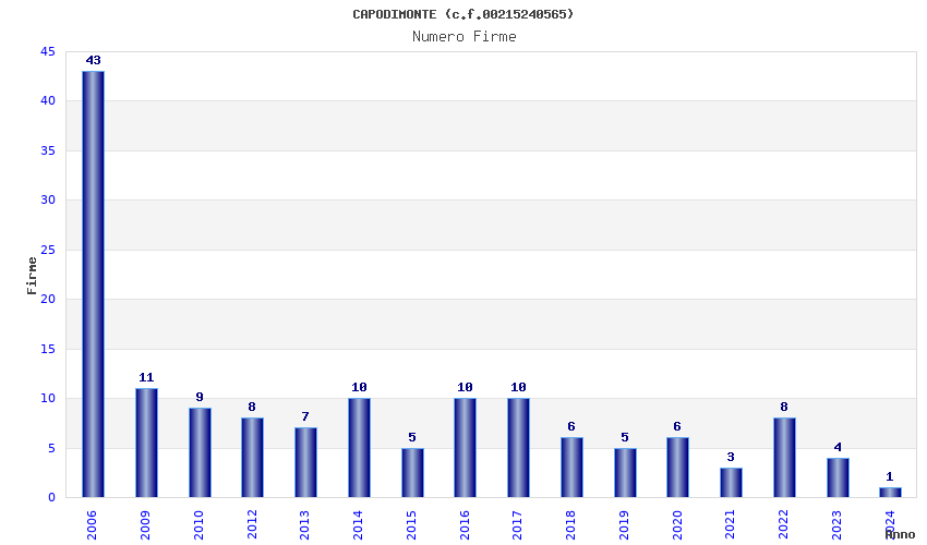| Anno | Firme | Importi | Media | Naz. | Reg. | Prov. | Comu. |