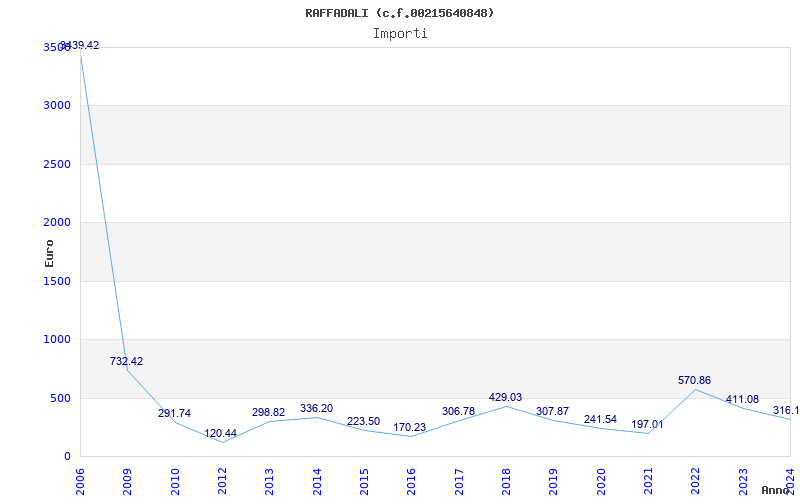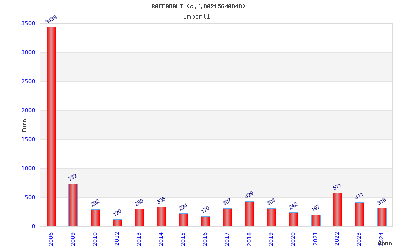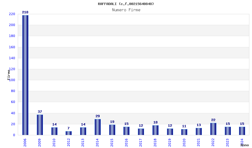 | Anno | Firme | Importi | Media | Naz. | Reg. | Prov. | Comu. |