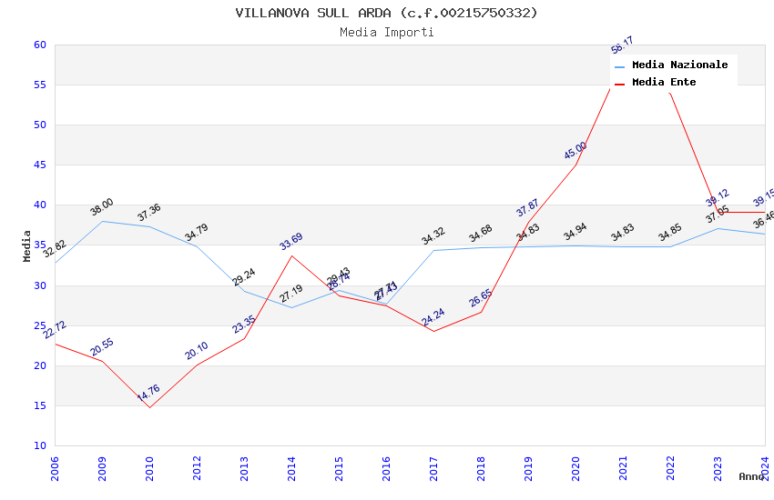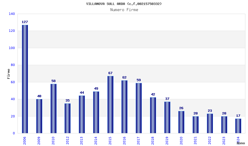 | Anno | Firme | Importi | Media | Naz. | Reg. | Prov. | Comu. |