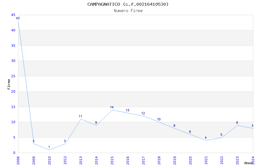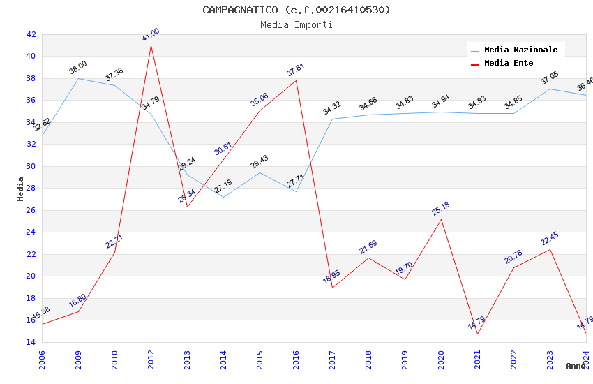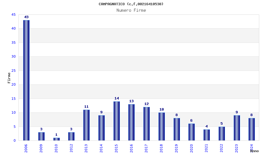 | Anno | Firme | Importi | Media | Naz. | Reg. | Prov. | Comu. |