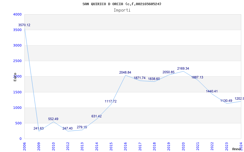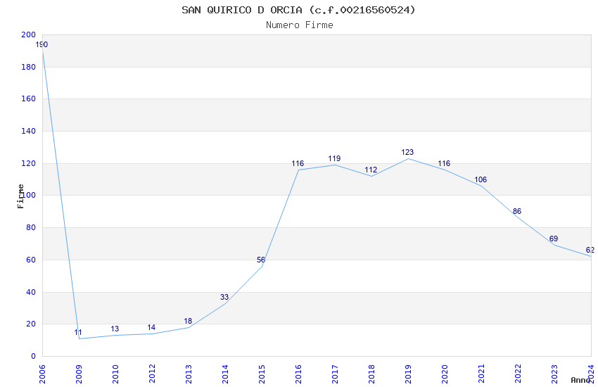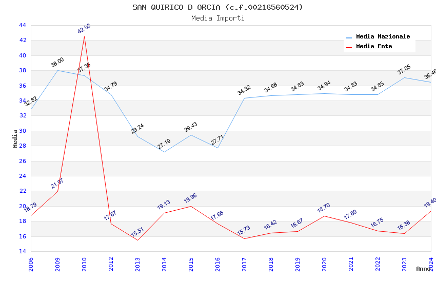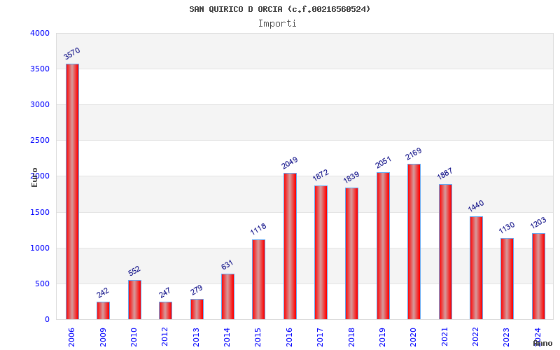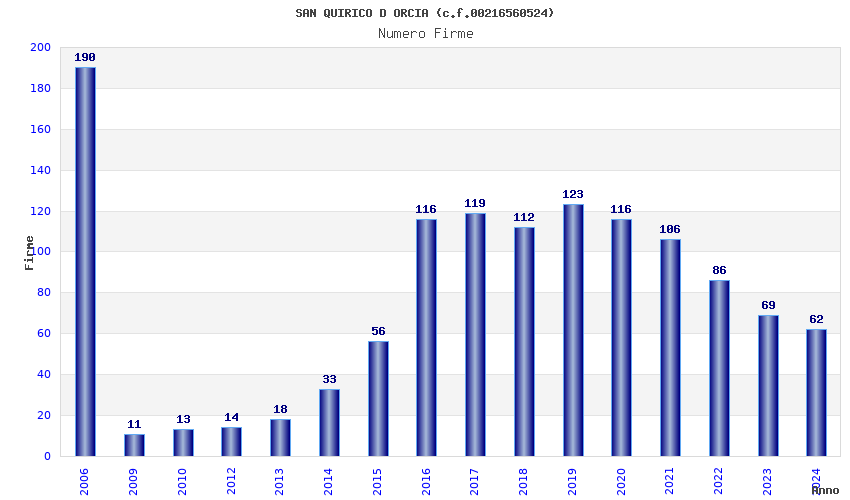 | Anno | Firme | Importi | Media | Naz. | Reg. | Prov. | Comu. |