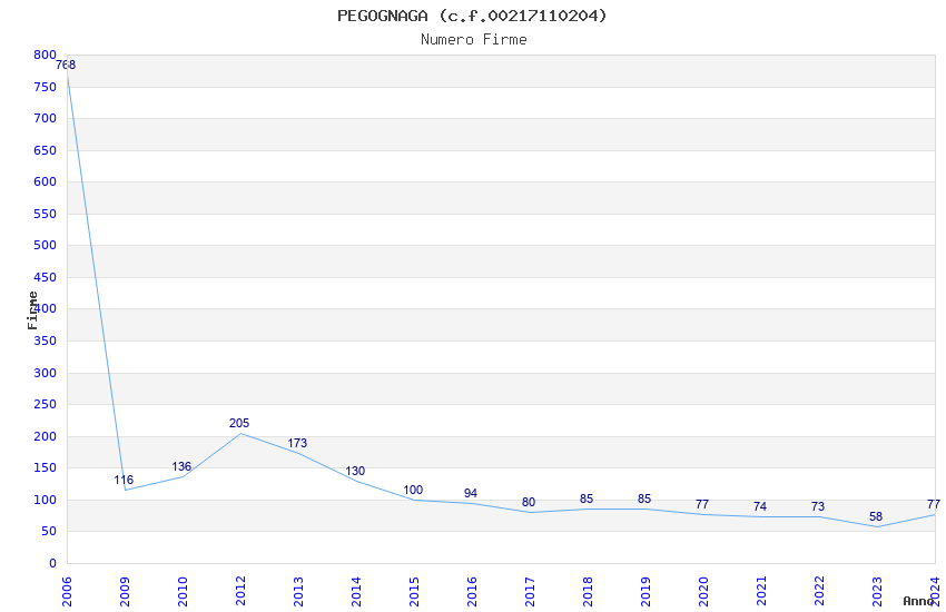 Anno Firme Importi Media Naz. Reg. Prov. Comu.
