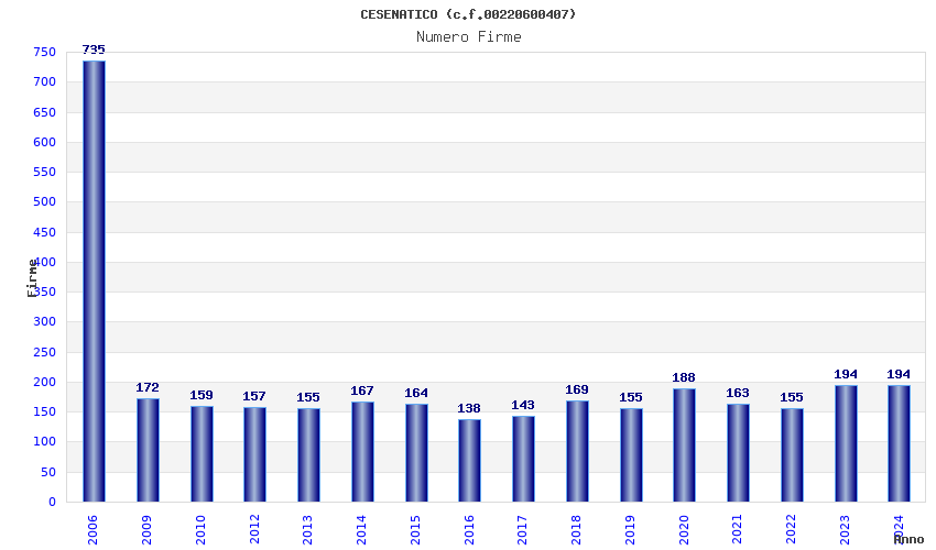 | 2006 | 735 | 11.279,80 | 15,35 | 3.689 | 338 | 26 | 2 |