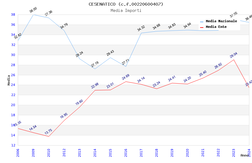 | Anno | Firme | Importi | Media | Naz. | Reg. | Prov. | Comu. |