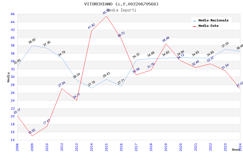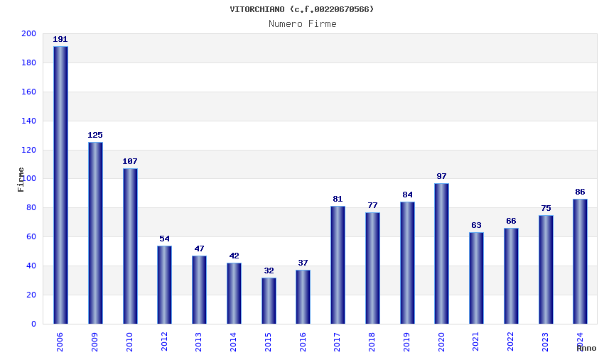 | Anno | Firme | Importi | Media | Naz. | Reg. | Prov. | Comu. |