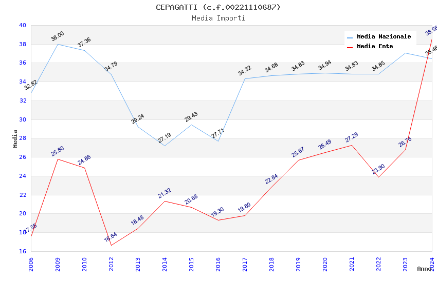 | Anno | Firme | Importi | Media | Naz. | Reg. | Prov. | Comu. |