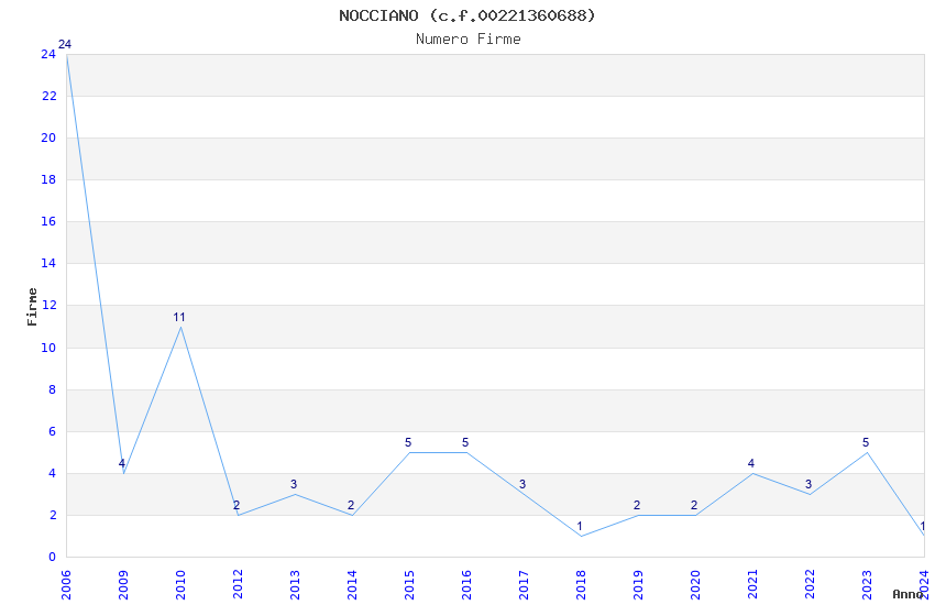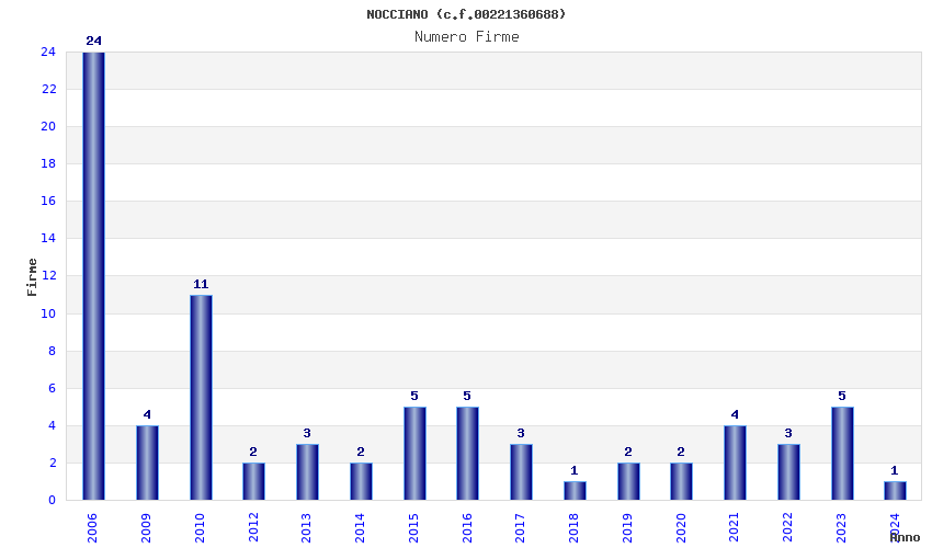 | Anno | Firme | Importi | Media | Naz. | Reg. | Prov. | Comu. |
