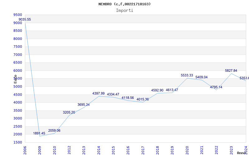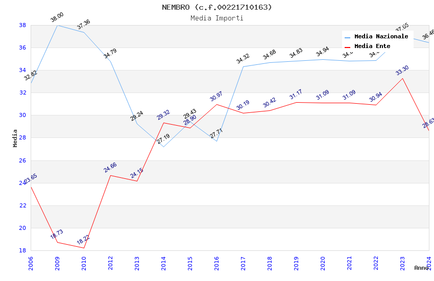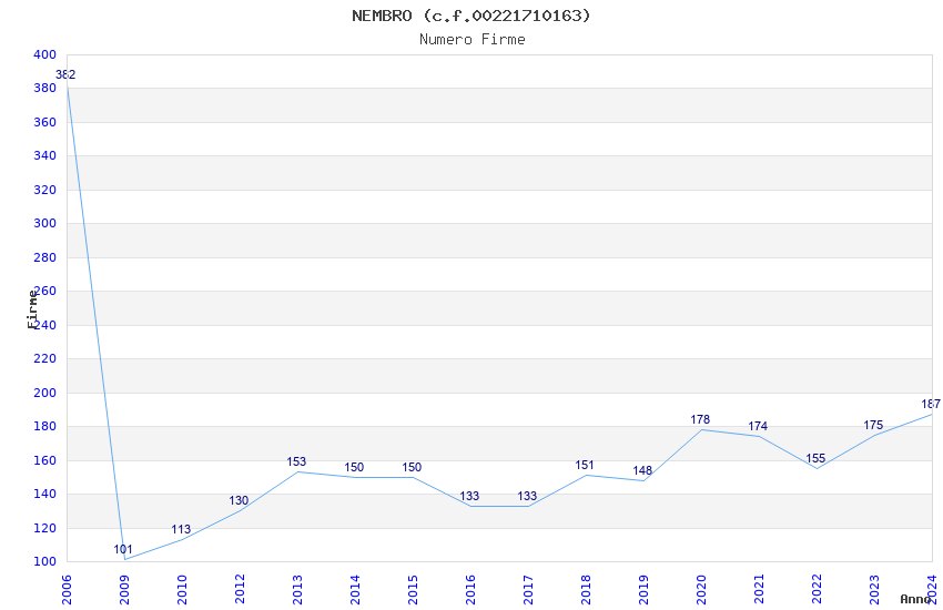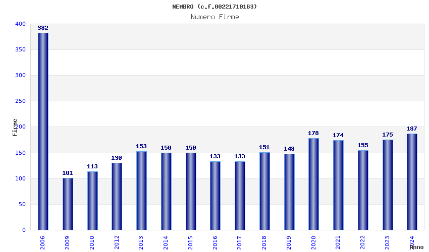 | Anno | Firme | Importi | Media | Naz. | Reg. | Prov. | Comu. |