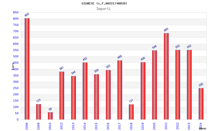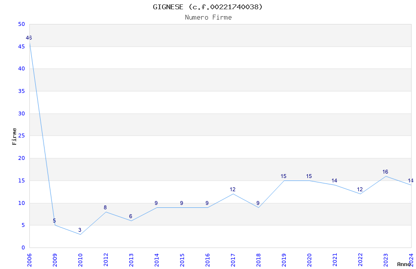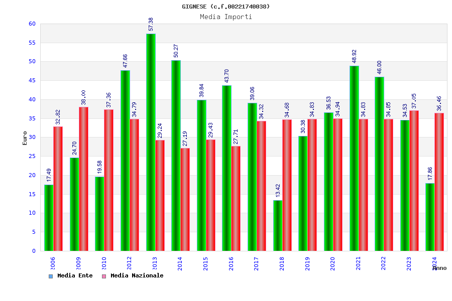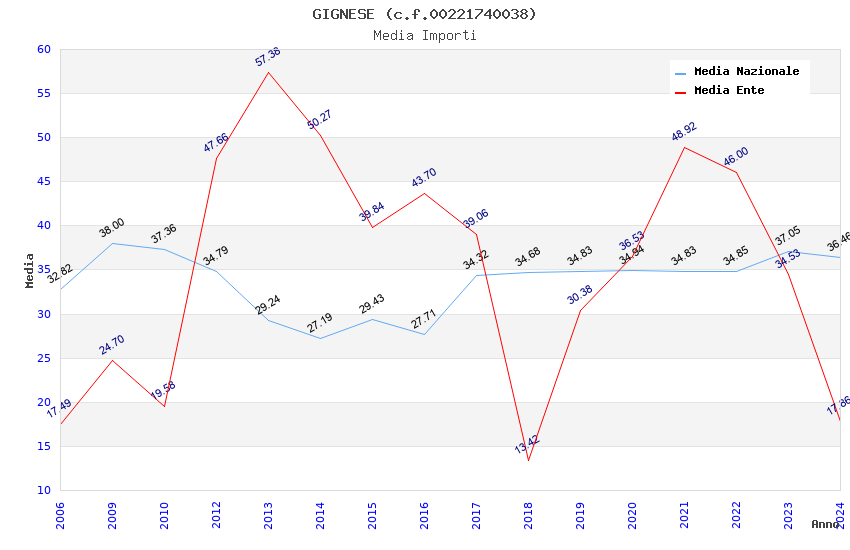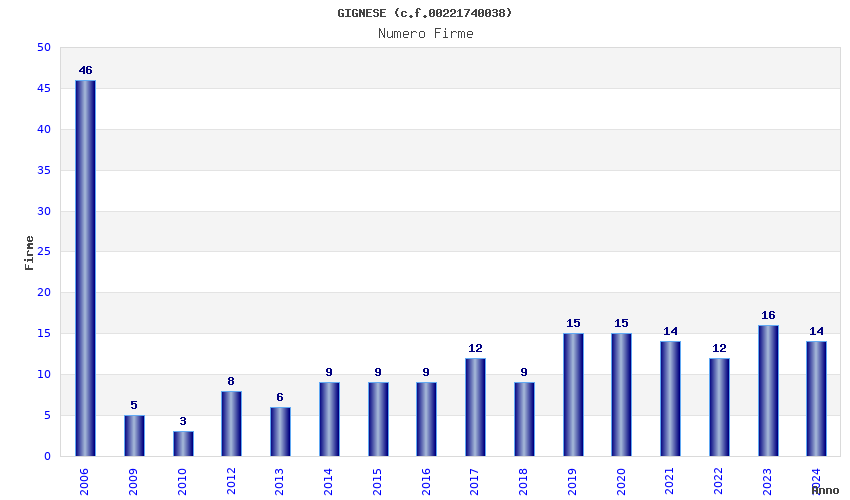 | Anno | Firme | Importi | Media | Naz. | Reg. | Prov. | Comu. |