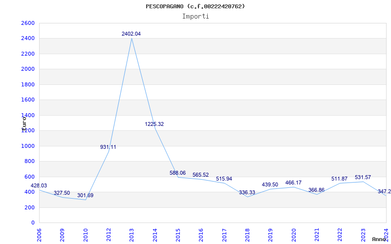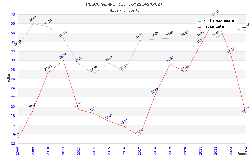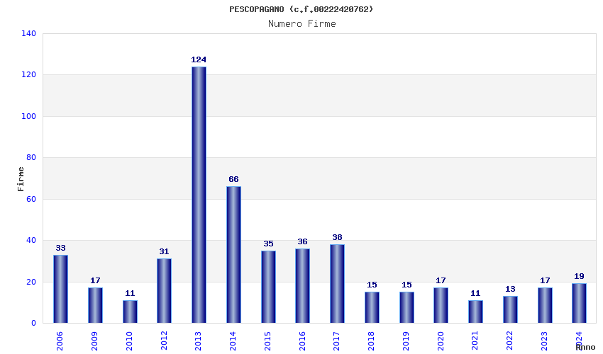 | Anno | Firme | Importi | Media | Naz. | Reg. | Prov. | Comu. |