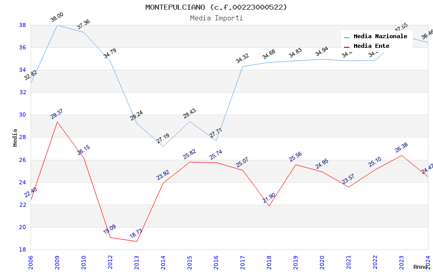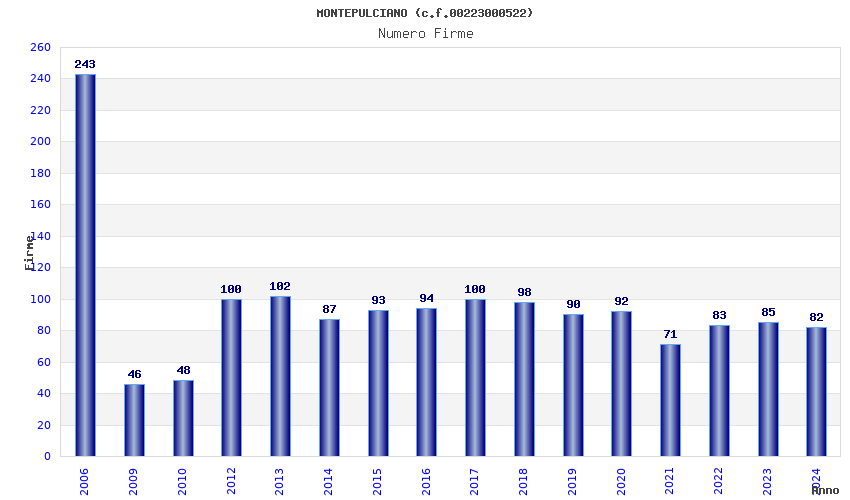 | Anno | Firme | Importi | Media | Naz. | Reg. | Prov. | Comu. |