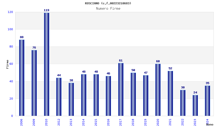 | Anno | Firme | Importi | Media | Naz. | Reg. | Prov. | Comu. |