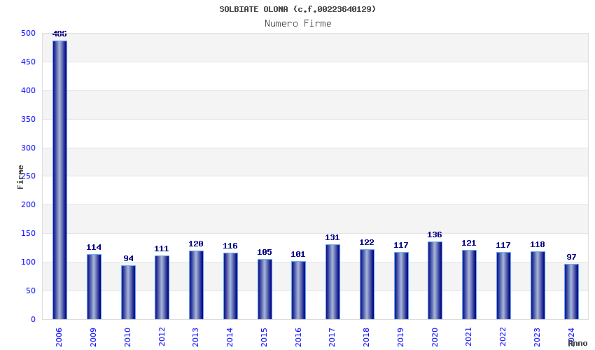 | Anno | Firme | Importi | Media | Naz. | Reg. | Prov. | Comu. |